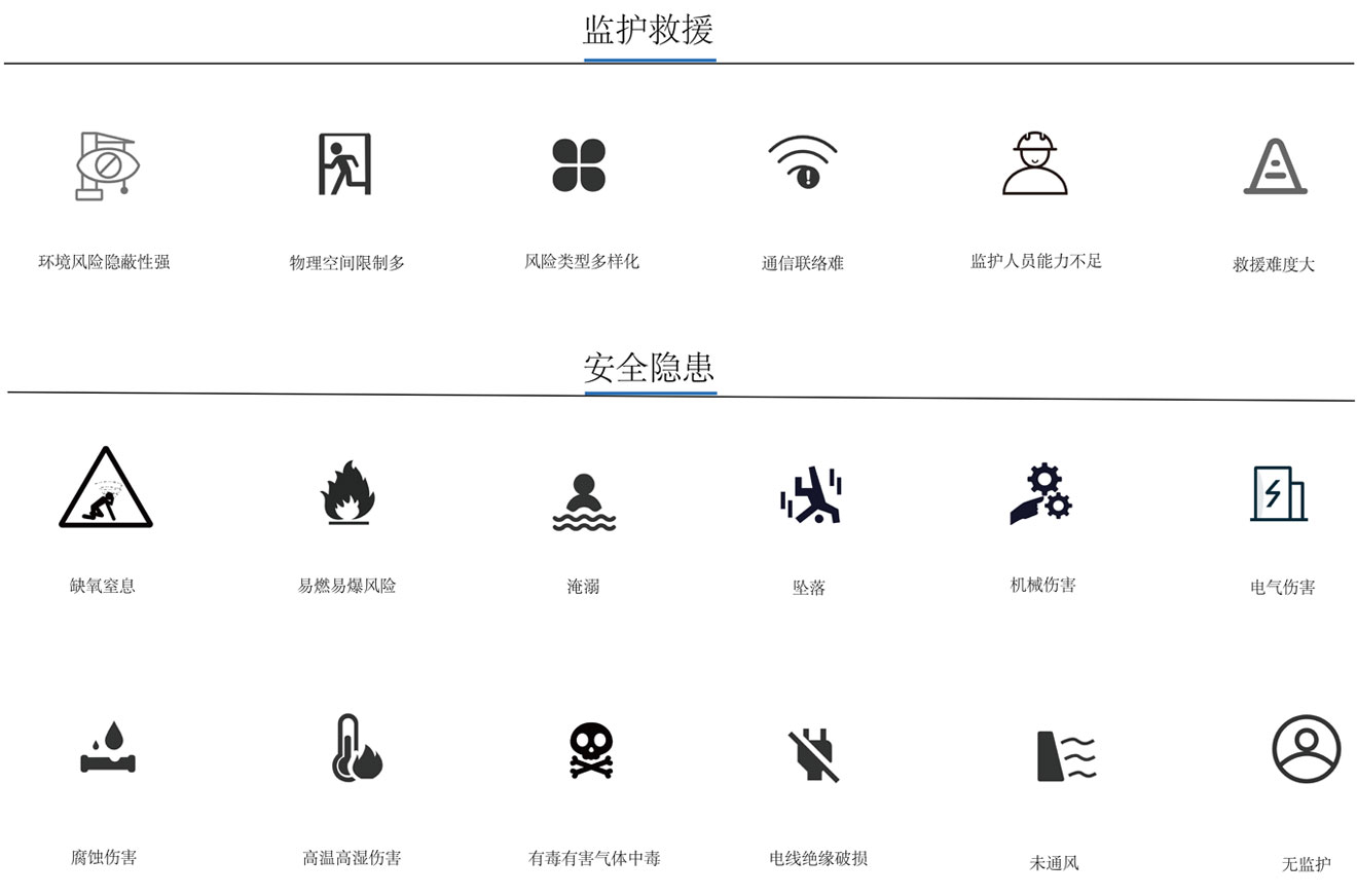 目前除了安裝必要的通風(fēng)設施外,主要是靠人工巡檢作為作業(yè)安全的預防手段,效率比較低,而且存在不能及時(shí)發(fā)現事故的可能性。市場(chǎng)上的相關(guān)安全監測產(chǎn)品,基本都是在固定位置、用攝像頭和輔助設備組成的系統,存在造價(jià)高、系統復雜、不合適實(shí)際工作場(chǎng)景等問(wèn)題。